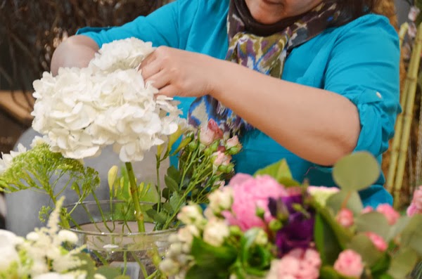 Una mesa llena de flores nos estaba esperando a Keyla de Tendencias de Bodas, a Isabel de Petit Mafalda y a mi Presume de Boda, para empezar a aprender a hacer un ramo de novia. Lo primero que nos hicieron saber en Verde Pimienta es que cuando quedan con una novia hay que escucharla, conocerla, saber todos los detalles de la boda y así poder asesorarla y darle el ramo de su boda, SU RAMO.