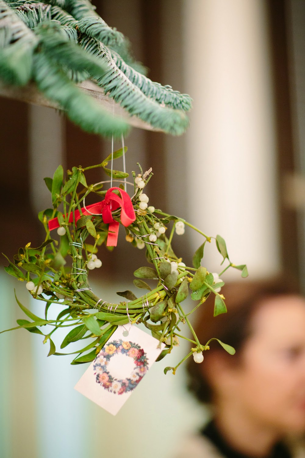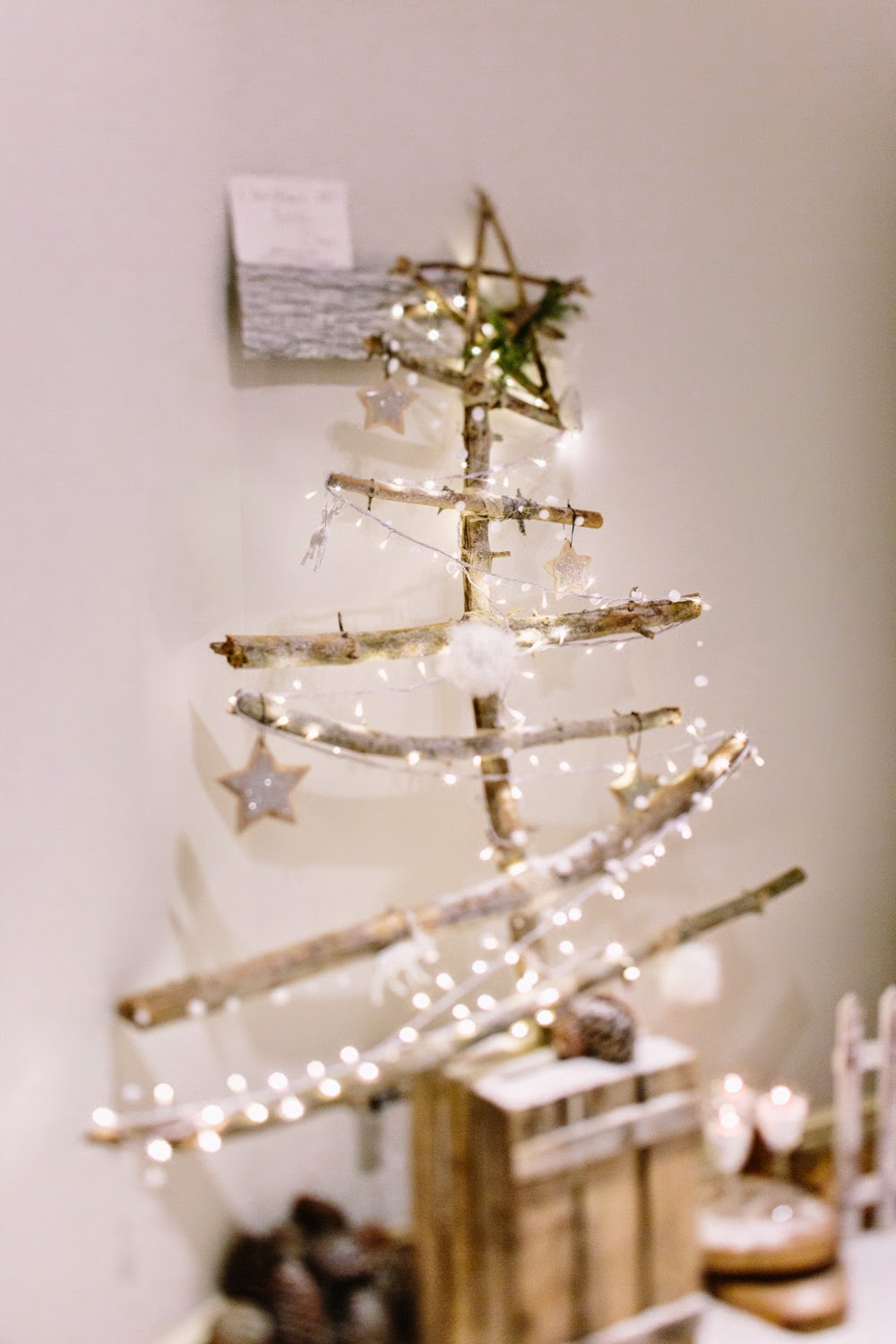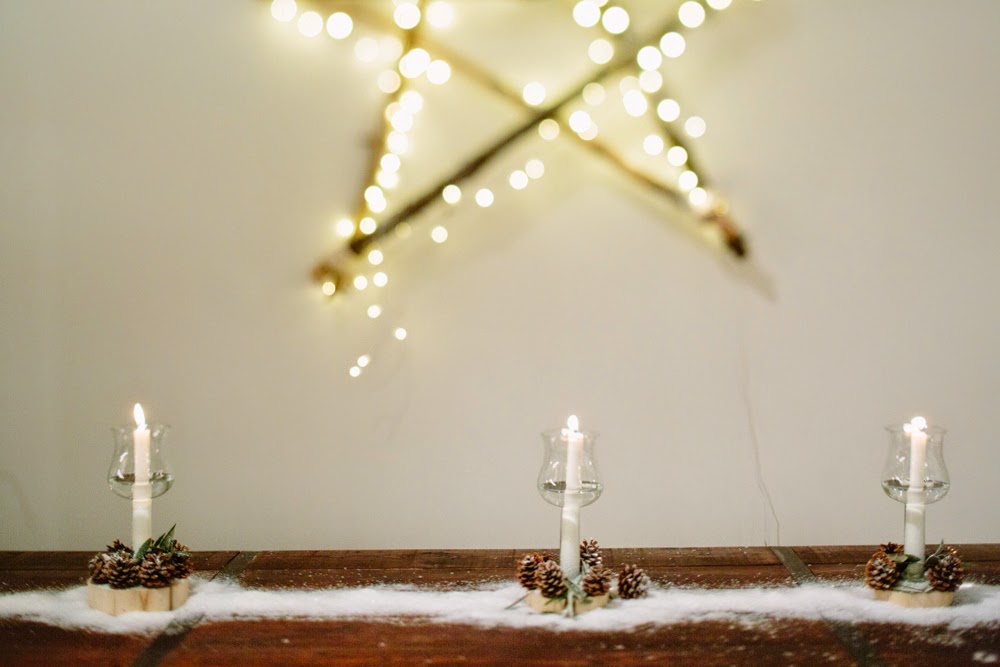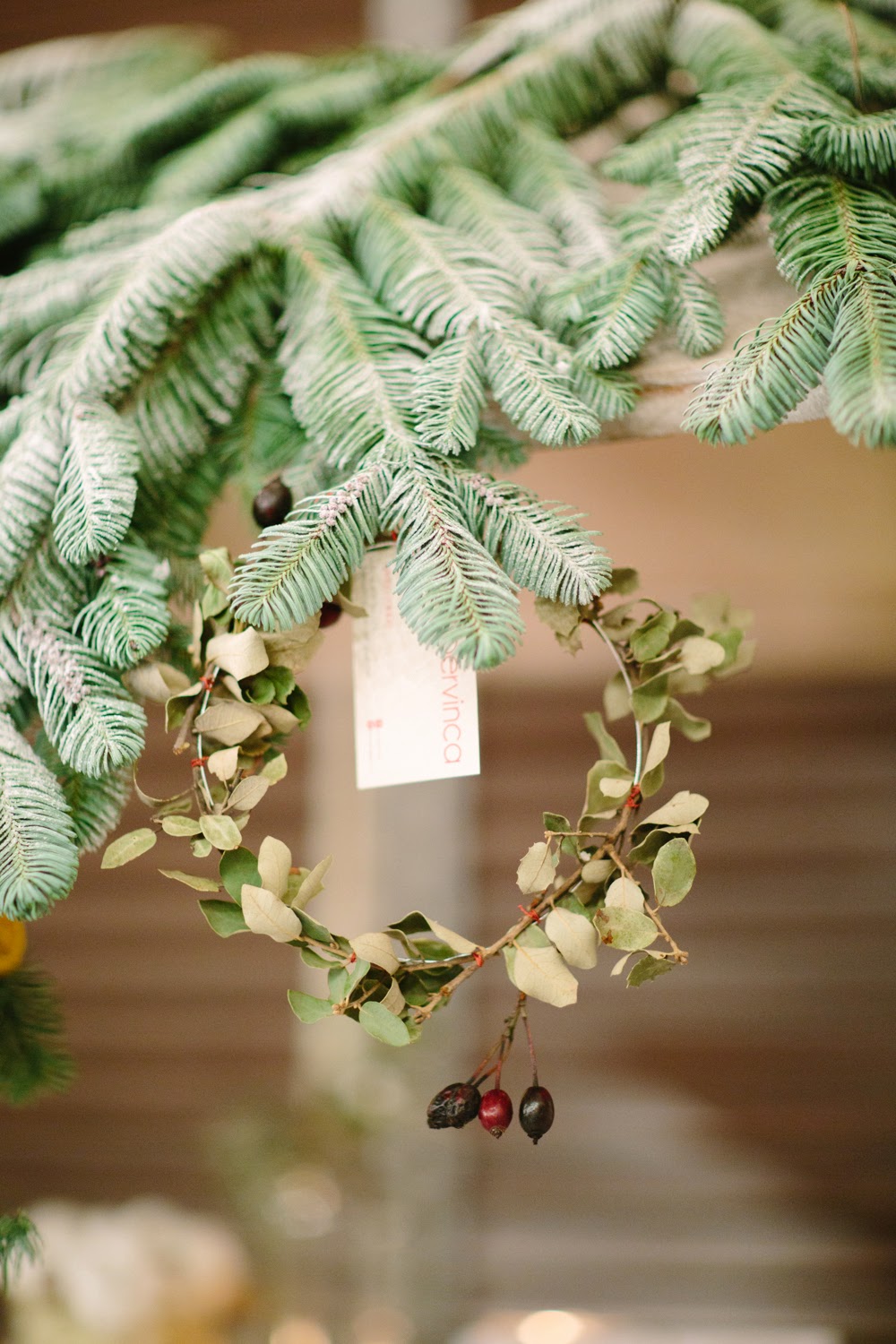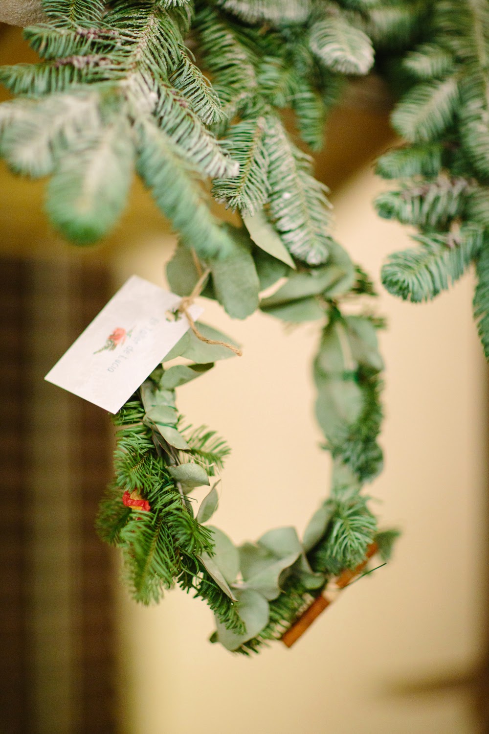 Cuando entré me pareció estar en un cuento de Navidad de Dickens. Una fachada de ladrillo blanco me dio la bienvenida nada más entrar. El suelo cubierto por una alfombra blanca cubierta con un plástico te hacía creer que andabas sobre nieve. Debajo de la cúpula del hotel me rodeaban puestecitos de madera llenos de comida y bebida. Hojarasca, ramas, leña, piñas, coronas, una estrella de ramas, un árbol de Navidad… eran algunos de los detalles que adornaban el espacio. Me encontré en una auténtica boda de invierno.