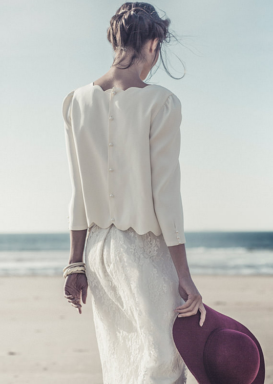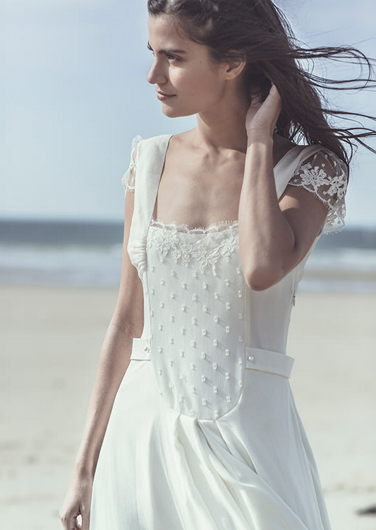 La diseñadora es la francesa Laure de Sagazan, creó su marca en 2011 y cada año que pasa sorprenden más sus diseños por lo bohemios y elegantes que son. Espaldas de vértigo que resaltan las líneas de la mujer, sin duda es una de sus grandes apuestas en todas sus colecciones. Sus diseños te transportan a otra época, donde resalta la sutileza de una mujer femenina y destaca en los detalles y acabados.