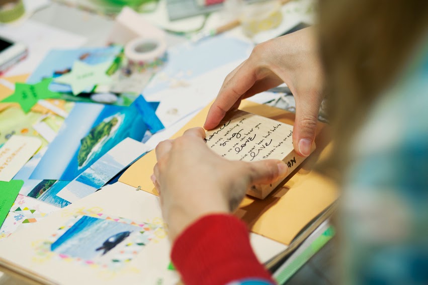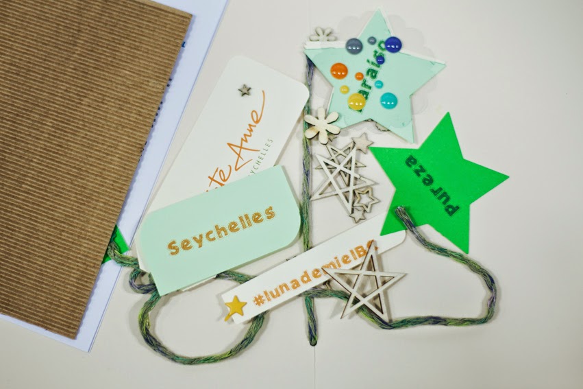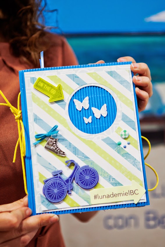Una vez terminada la presentación, comenzamos el taller de scrapbooking. El reto, embellecer «El diario de viaje de nuestra luna de miel» de la mano de Mirián G. Brizuela artista y gran enamorada del scrapbooking. Cada una escogió el tipo de novia que era. Y para mi sorpresa, el hotel que me venía al pelo era el Saint Anne, la novia eco-verde. Creo que el saber que te dan un masaje en plena selva fue lo que me convenció del todo jejeje