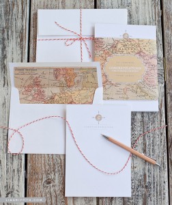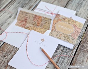 Creo que puedo hablar por las dos si digo que los viajes son una de nuestras grandes pasiones. Nos conocimos en torno de una boda viajera, la mía, y ya hemos podido compartir alguna que otra anécdota que implicara maletas de por medio. Os diré por tanto que no puedo mostrarme objetiva cuando alguna pareja escoge este tema como línea argumental de su boda, porque ¡me encanta! La composición que os mostramos hoy la hemos encontrado en el blog de Lia Griffith y el flechazo ha sido instantáneo. No solo por que nos haya parecido preciosa, sino porque además nos proponen la posibilidad de imprimir sus tres componentes y utilizarlo para lo que nosotros queramos. Podría ser una invitación, pero también una tarjeta de agradecimiento, para hacer algún regalo especial, lo que vuestra imaginación os permita! Nosotros os ofrecemos la posibilidad de imprimirlo y personalizarlo para crear vuestra propia opción de tarjetería dentro de la boda… si es viajera, os encajará al 100%.